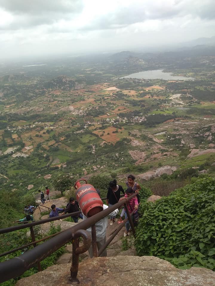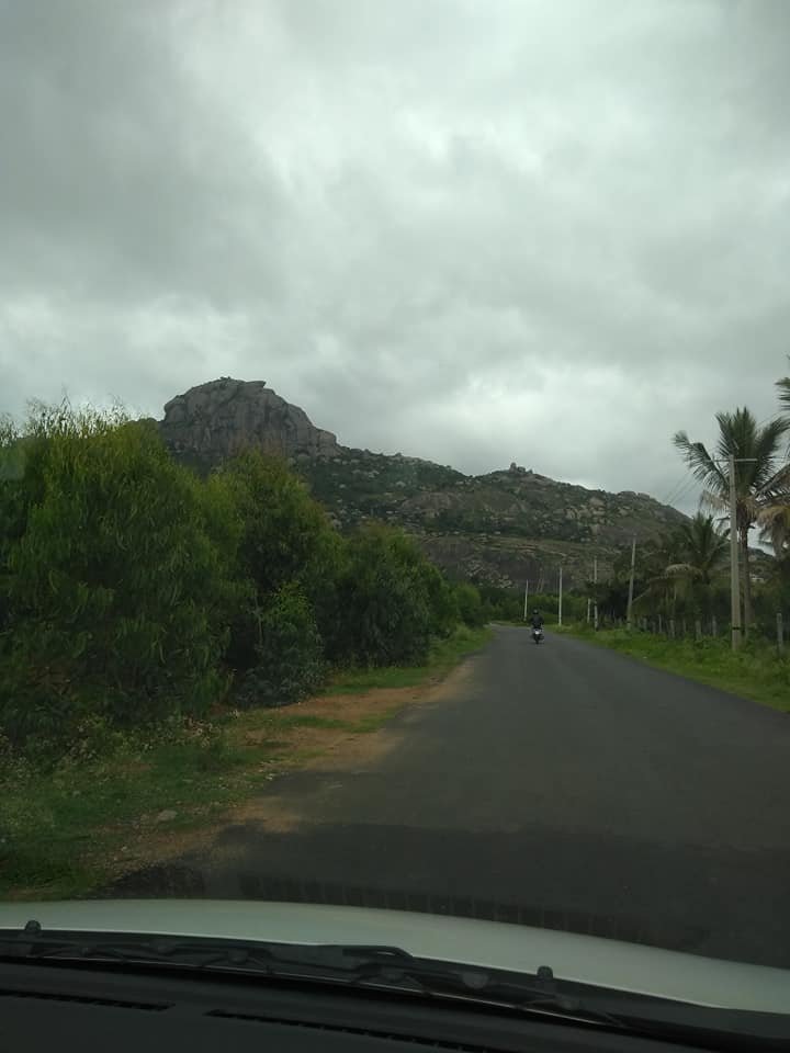 Following the maps, and driving slowly, enjoying the breeze and the music, I reached the base of Shivagange by 10.45am.